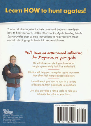 From the back of the book, "You've admired agates for their color and beauty --- Now learn how to find your own. Unlike other books, Agate Hunting Made Easy provides step-by-step instructions to help you turn those once-frustrating agate hunts into successful ones."