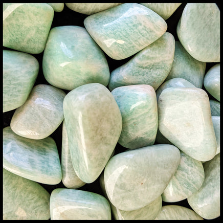 Amazonite displays a blue-green color with varying shades. The one pound lots contain approximately 20 pieces of 1" in diameter fully tumbled pieces.