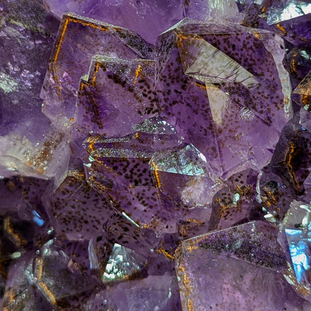 Other notes: 1 crystal has a citrine druzy coating Top section has a healed fracture that is partially visible on the outer host of the geode, but is not visible along the inner crystals themselves. |