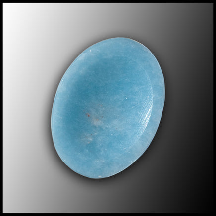 Small worry stone made from opaque light blue Angelite. Worry stones are an oval shape with a slightly concave indentation for your thumb, and are polished smooth.