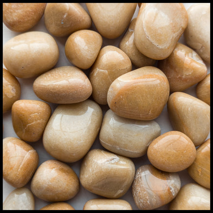 B-grade yellow aventurine 1 lb lot tumbled from India. The lot includes golden yellow rocks that are about 1" in size.