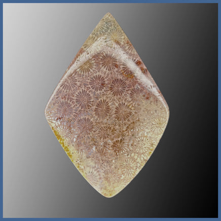 Pink, tan, white, and orange polished Agatized Coral Cabochon.