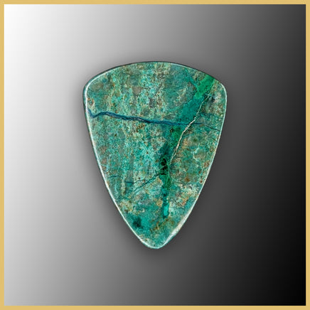 This cabochon is polished out of Chrysocolla rough from Mexico, and shows deep and saturated blue-green colors.