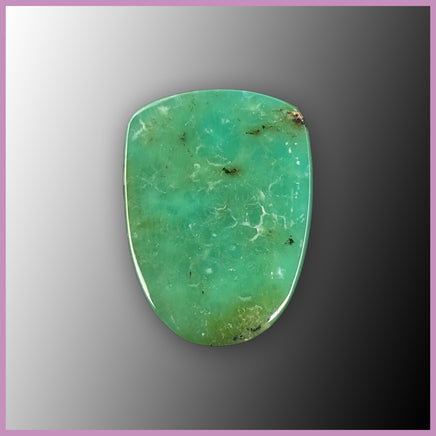 Australian Chrysoprase polished cabochon in bright, gemmy, green with slight crystalline texture and a few specks of brown.