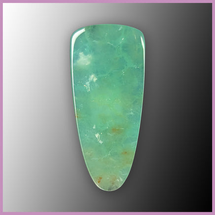 Australian Chrysoprase polished cabochon in light, gemmy green with slight crystalline texture.