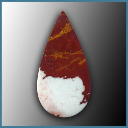 Damu Jasper polished cabochon featuring white, dark red, and dark golden yellow jasper.