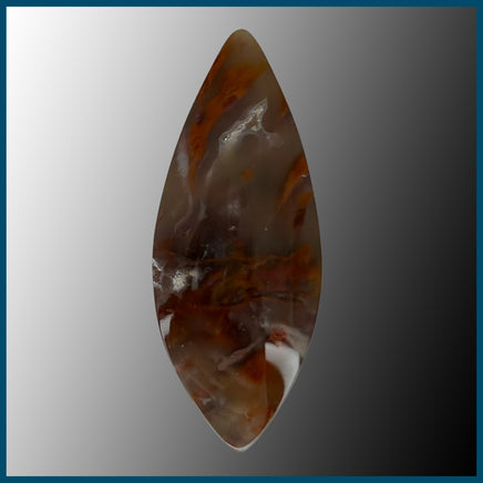 Polished Flame Agate Cabochon with a couple small druzy pockets as well as red and orange plumes in clear/grey agate.