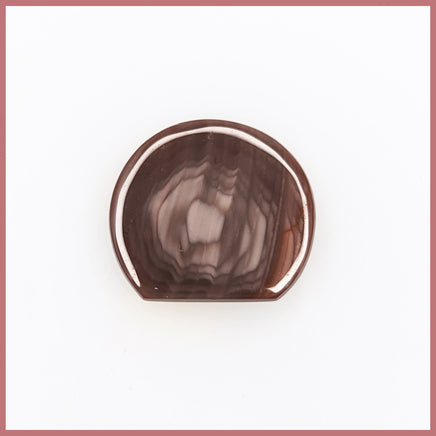 Royal Imperial Jasper, from Mexico, polished cabochon showing streaked egg-patterning in shades of tan and a semi-polished back.