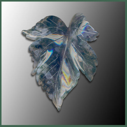 This green moss agate leaf is carved out of one piece and polished on every surface.