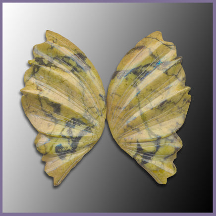 A pair of butterfly wings hand carved from serpentine with a flat back and glossy finish,