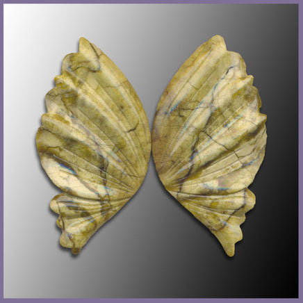 A pair of butterfly wings hand carved from serpentine with a flat back and glossy finish,