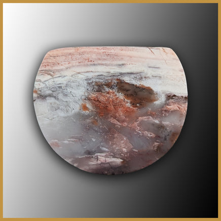 Kowallabe Quartzite Cabochon featuring opaque white with hints of pink, shades of cloudy gray, and spots of pink and orange.