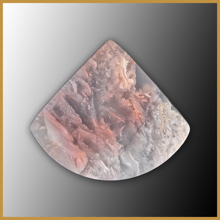 Kowallabe Quartzite Cabochon with a matte finish. It features feathery patterning in various hues of light pink in a foggy translucent base.