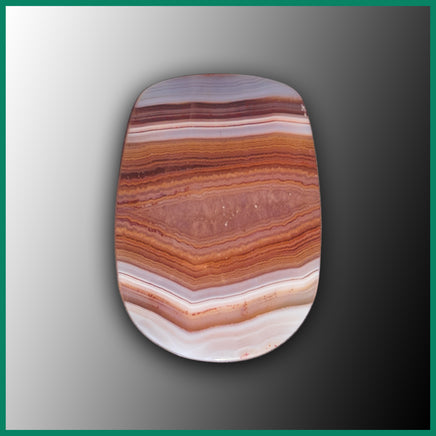 Malawi Agate polished cabochon featuring white, translucent, and shades of peach banded agate with parallax.