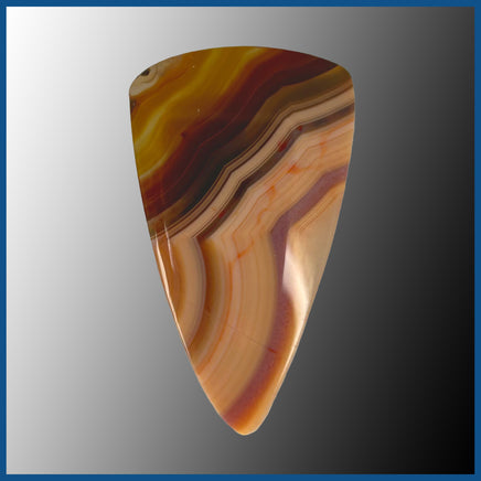 Malawi Agate polished cabochon featuring white, red, translucent, and shades of orange agate.