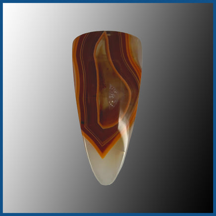 Malawi Agate polished cabochon featuring white, red, translucent, and shades of orange agate.