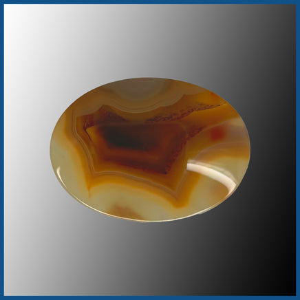Malawi Agate polished cabochon featuring white, red, translucent, and shades of orange agate.