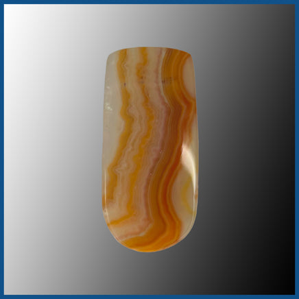 Malawi Agate polished cabochon featuring white, red, translucent, and shades of orange agate.