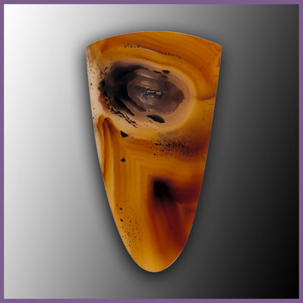 This Montana cab features translucent orange agate with banding and black dendrites and an inclusion creating additional banding.