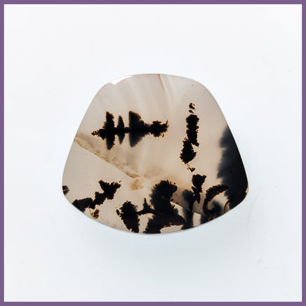 This Montana cab features floating dendrite trees in black, with translucent banding. It is polished on both sides.