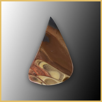 This Morrisonite, also called Morrison Ranch Jasper, polished cabochon features cream, brown, pink, and dark teal jasper with overlapping egg patterning.