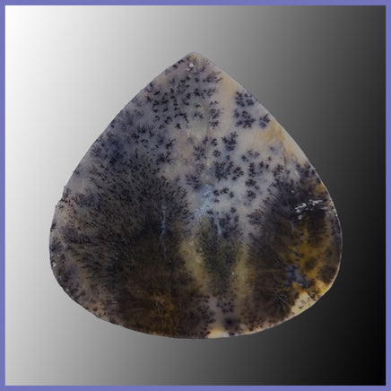Plume Agate Cabochon with black, and orange/brown plumes set in bluish-white agate.