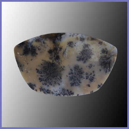 Plume Agate Cabochon with black, white, and orange/brown plumes set in bluish cloudy agate.