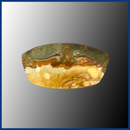 Rocky Butte Picture Jasper originates from southeast Oregon, close to other picture jasper deposits like Blue Mountain and the famous Owyhee Jasper. This polished Rocky Butte Picture Jasper Cabochon features Jasper in shades of red, orange, yellow, green, and white.