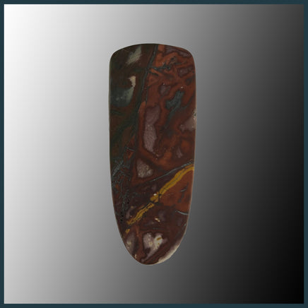 Orange, red, pink, green, yellow, and white Red and Green Blanket jasper cabochon.