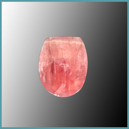 Polished Rhodochrosite cabochon with a pink, and white face.