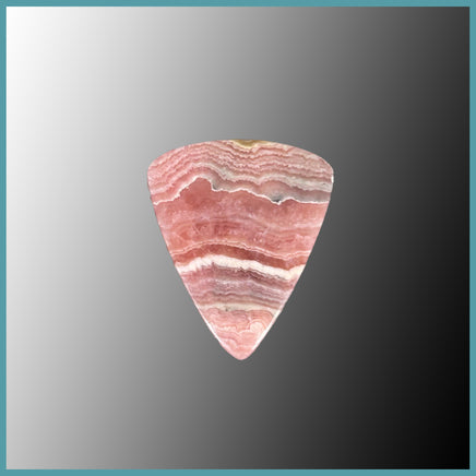 Polished Rhodochrosite cabochon with pink, grey, and white banding patterns.