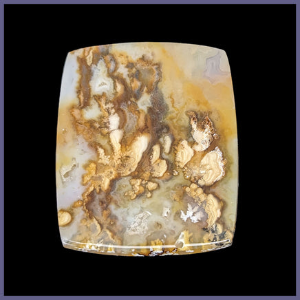 Orange, brown, white, yellow, and tan plumes in translucent agate.