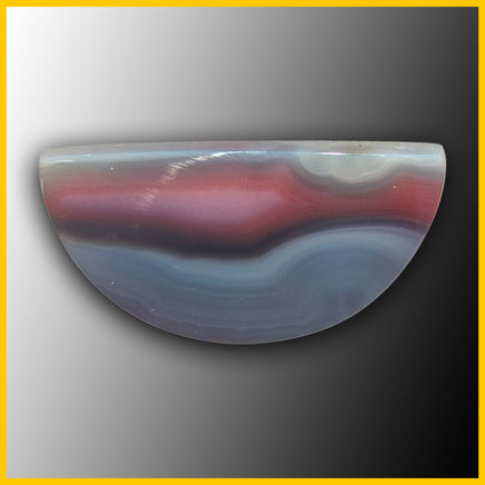 Swazi Agate polished cabochon featuring translucent blue-gray and pink agate with soft banding.