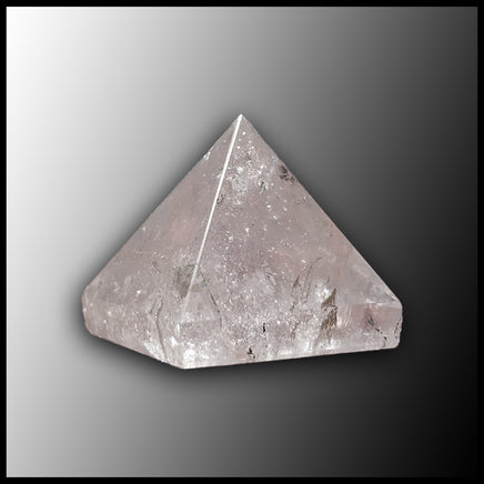 Small pyramid carved from clear quartz, in transparent to translucent white.