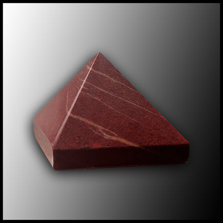 Small pyramid carved from red jasper, in a dark brick red color with occasional light or dark patterning.