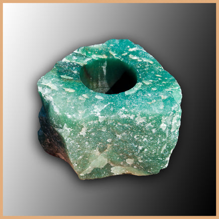 Aventurine Candle Holder with a polished top and drilled hole to fit a tea light, and silicon dots on the bottom to protect surfaces. Light sage green.