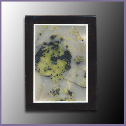 INT193db Intarsia Drilled Bead features Serpentine and Quartz framed by Howlite and Black Onyx. A 2mm hole is drilled on the top side of the bead.