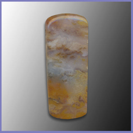 RRP102dps Regency Rose Plume Agate Pendant Bead features translucent amber agate with yellow, blue, brown, and orange plumes. A 2mm hole is drilled on the top side.