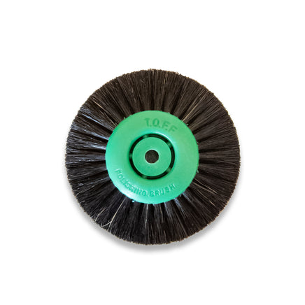 A 0.75" wide, 3" diameter, polishing brush wheel for silversmithing. Fits onto metal spindle included in the Rhino EM-1.