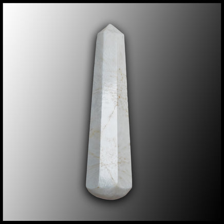 Small massage wand carved from Barite in opaque white. Has one terminated end and one smooth rounded end.