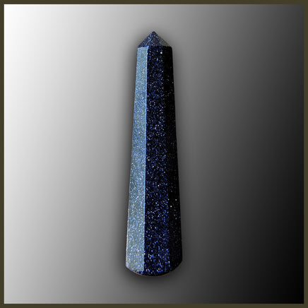 Small massage wand carved from blue goldstone, in a sparkly dark blue color. Has one terminated end and one smooth rounded end.