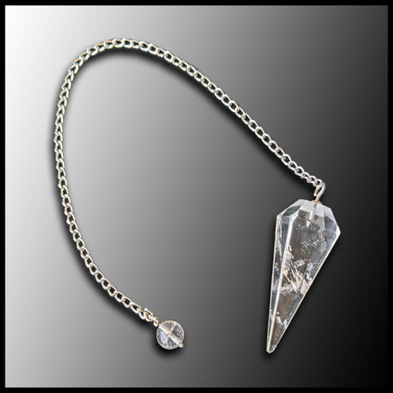 Pendulum carved from clear quartz. Set on a chain with a transparent bead.