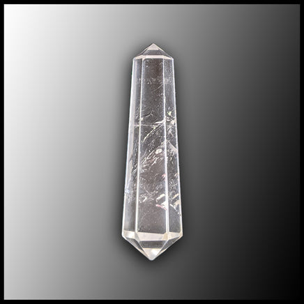 Small double terminated point carved from quartz, in transparent to translucent white.