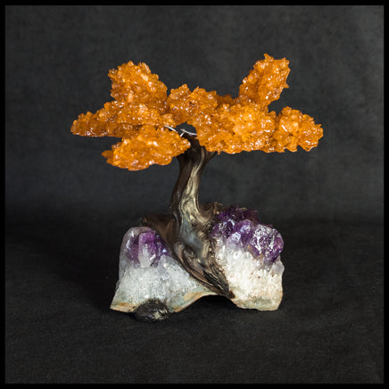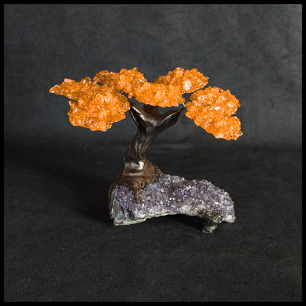 Gemstone Trees have been present in many cultures, and are popular in home décor concepts and practices like Feng Shui and Vastu Shastra. This Gemstone Tree is a size 3 and features leaves made of Citrine chips on an Amethyst base. The leaves are secured on bendable wire, for your creative preference in positioning. This small size is perfect for desktop decoration or a unique gift.
