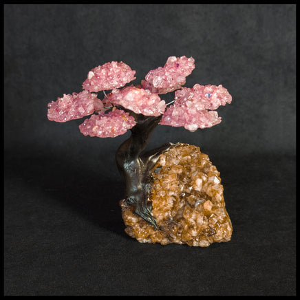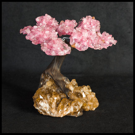 Gemstone Trees have been present in many cultures, and are popular in home décor concepts and practices like Feng Shui and Vastu Shastra. This Gemstone Tree is a size 3 and features leaves made of Rose Quartz chips on a Citrine base. The leaves are secured on bendable wire, for your creative preference in positioning. This small size is perfect for desktop decoration or a unique gift.