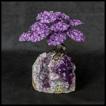 Gemstone Trees have been present in many cultures, and are popular in home décor concepts and practices like Feng Shui and Vastu Shastra. This Gemstone Tree is a size 4 and features leaves made of amethyst chips and a beautiful amethyst crystal base. The leaves are secured on bendable wire, for your creative preference in positioning.