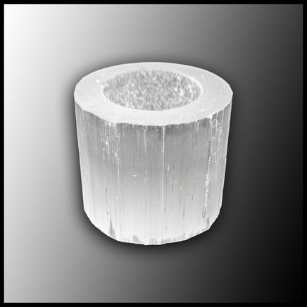 This selenite candleholder is small but shiny! Like our other selenite candleholders, this has space for a tealight in the center and will emit a warmer glow when lit. This specific item is from a high-quality, well cut selenite with intense chatoyancy that glimmers and shines brightly.