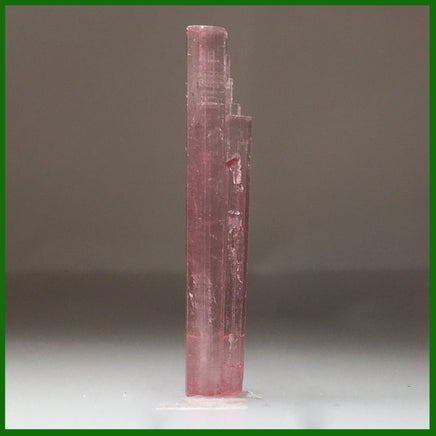 Peach Mine tourmaline features light pink tourmaline. Peach Mine tourmaline is found in Afghanistan often near watermelon tourmaline deposits. It can be found with green caps on its peachy-pink coloring. The chemical formula for peach tourmaline is Na(Li1.5Al1.5)Al6(Si6O18)(BO3)3(OH)3(OH).