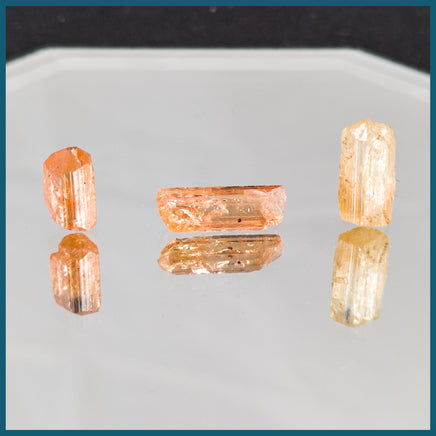 Set of 3 Golden Imperial Topaz crystals in translucent golden yellow and orange.