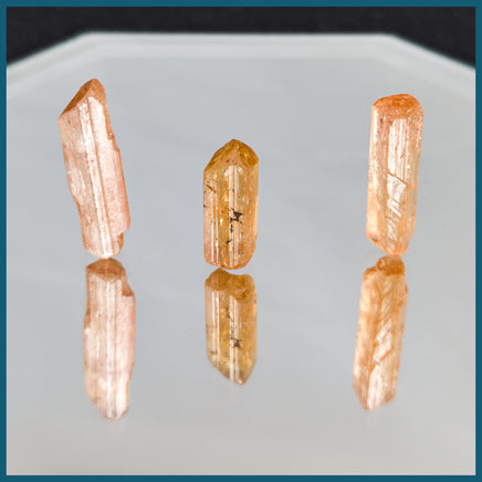 Set of 3 Golden Imperial Topaz crystals in translucent golden yellow and orange.